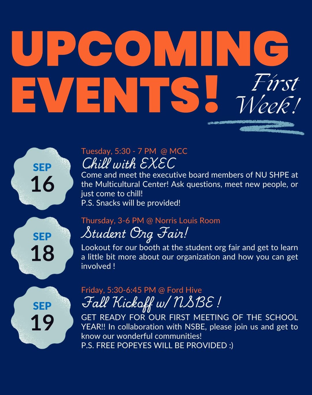 Northwestern University's SHPE chapter is a barrier free organization, our organization is open to all students enrolled at the university.